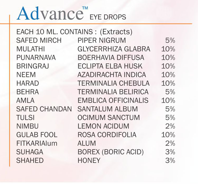 Allergy use Advance Eye Drops in Children and Adults. Advance Eye Drops checks excessive lacrimation,