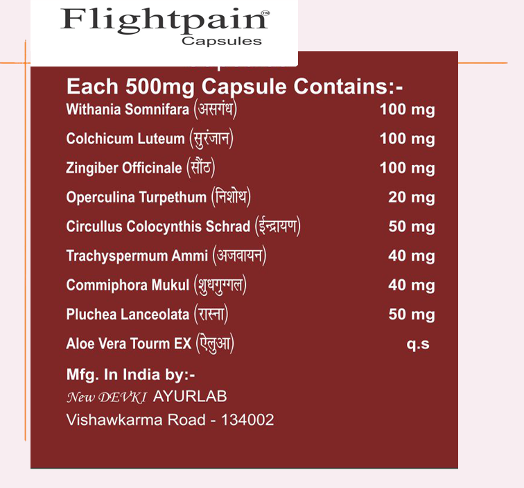 To provide relief from joint and muscular pains rely on flight pain capsules which keeps the joint mobile.flight pain capsules also helps in reducing uric acid levels along with controling pain .flight pain capsules also provides relief from joint pain,swelling,early morning stiffness,joint immobility,and improves the quality of life.