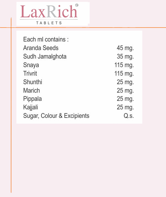 The pack of pile pasth capsules also contains five laxative capsules for your patients benifit, which can be taken one capsule at bed time with milk for chronic constipation patients.