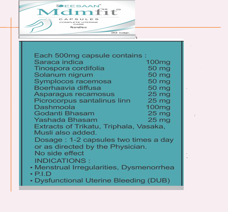 compared to Hormones. Mdmfit Capsules are to be taken In Dysfunctional Uterine Bleeding, PID and